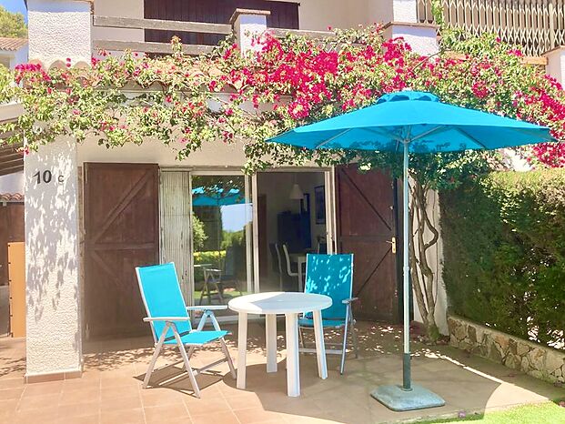 Agradable casa apareada bien equipada en alquiler. Situada delante de zona ajardinada con piscina